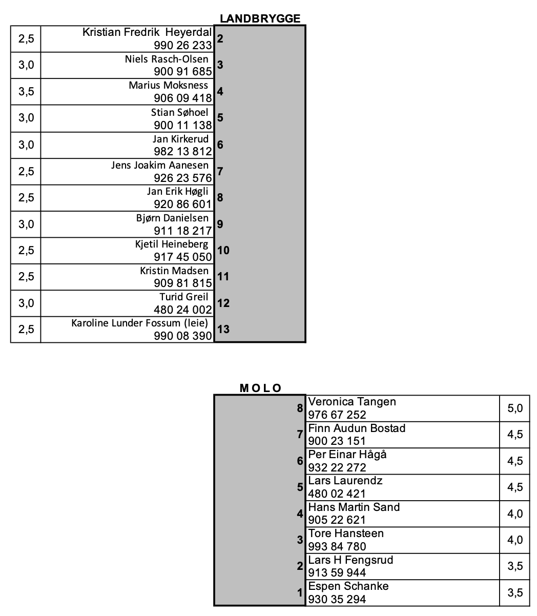 Havneplanen for sommeren 2026. Det er viktig at du sjekker havneplanen samme dag som du legger båten på brygga. Det kan forekomme endringer!